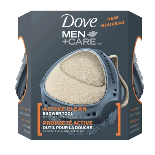 Dove® Men CareTM Active Clean Dual-Sided Shower Tool works with body wash for extra scrubbing power you can’t get from just using your hands. The mesh side delivers the perfect amount of thick cleansing lather, and the scrub side helps exfoliate for a deeper clean. Easy to grip and easy to hang. For best results, replace every 4-6 weeks.